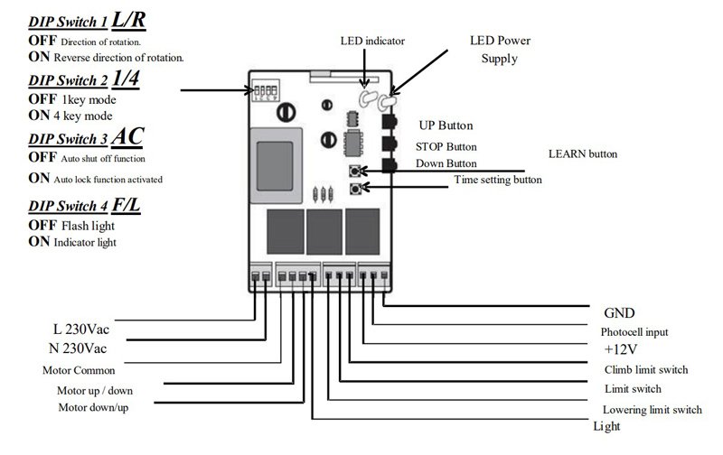 -Remote control open/close button can be shifted by jumper