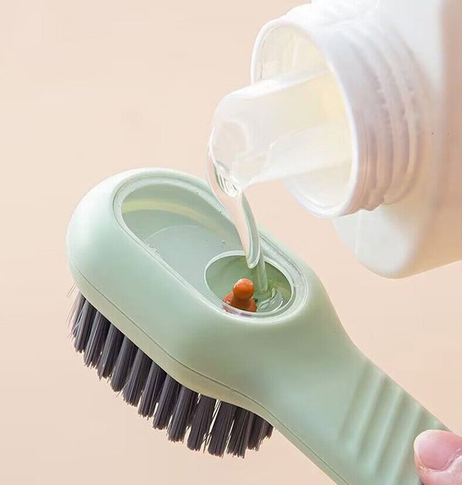 Βούρτσα καθαρισμού, ιδανική για τον υγρό καθαρισμό και συντήρηση παπουτσιών. Διαθέτει ανθεκτικές τρίχες από καουτσούκ και ενσωματώνει δοχείο για την τοποθέτηση υγρού απορρυπαντικού. Η μακριά λαβή εξασφαλίζει σταθερό κράτημα και άνεση κατά τον καθαρισμό.