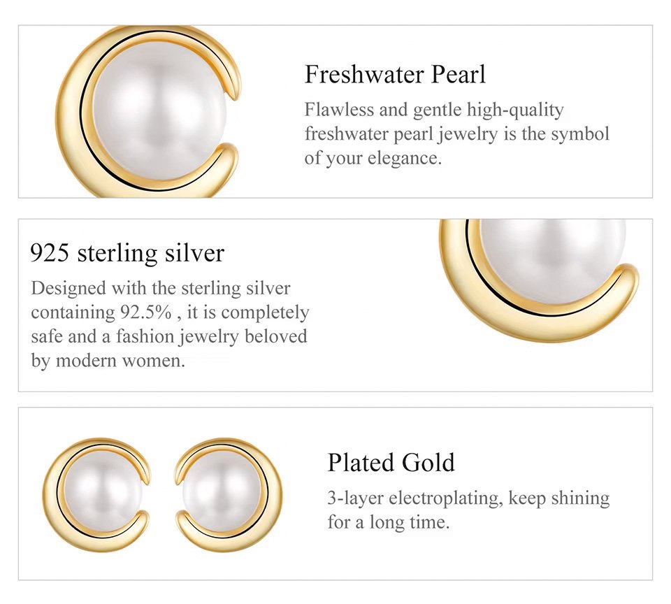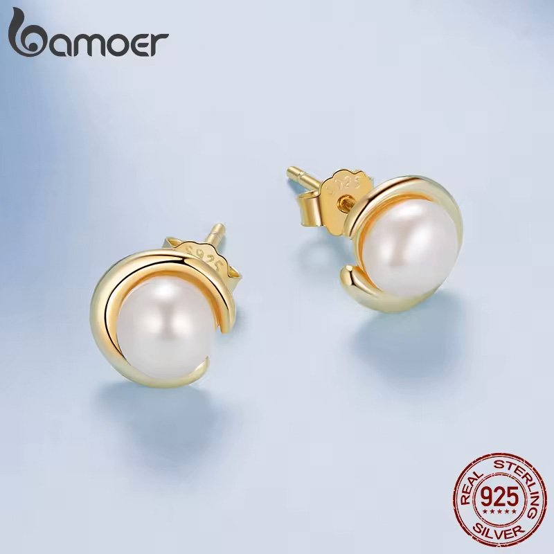 BAMOER σκουλαρίκια καρφωτά BSE1107 με λευκή πέρλα, ασήμι 925, χρυσό