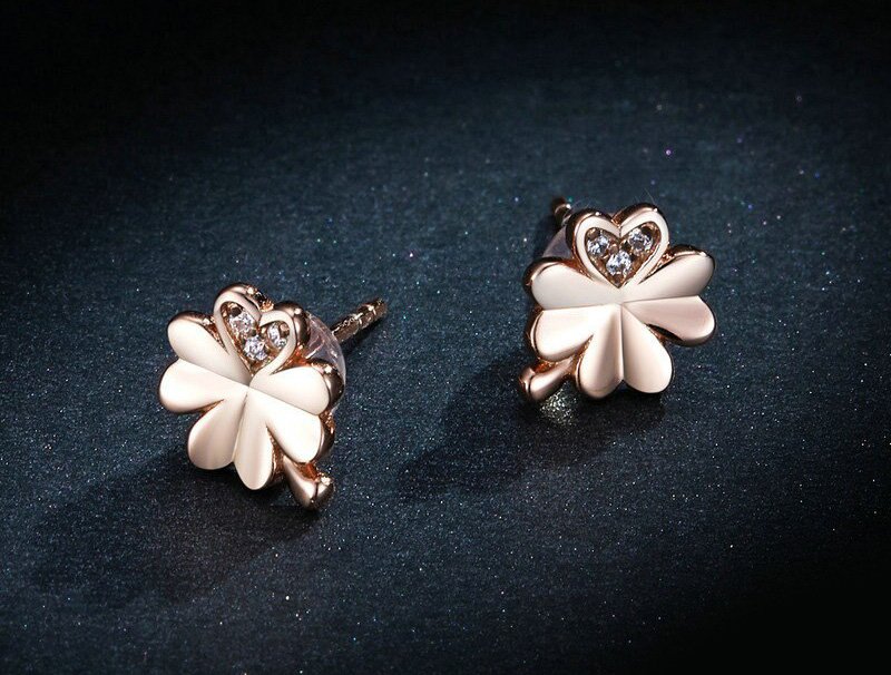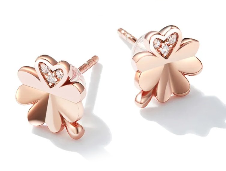 Εντυπωσιακό σκουλαρίκια Bamoer σε σχήμα τετράφυλλο τριφύλλι, κατασκευασμένα από ασήμι 925, σε ροζ χρυσό χρώμα, διακοσμημένα με αστραφτερή κυβική ζιρκόνια η οποία αντανακλά μοναδικά το φως και προσφέρει λάμψη στο κόσμημα.