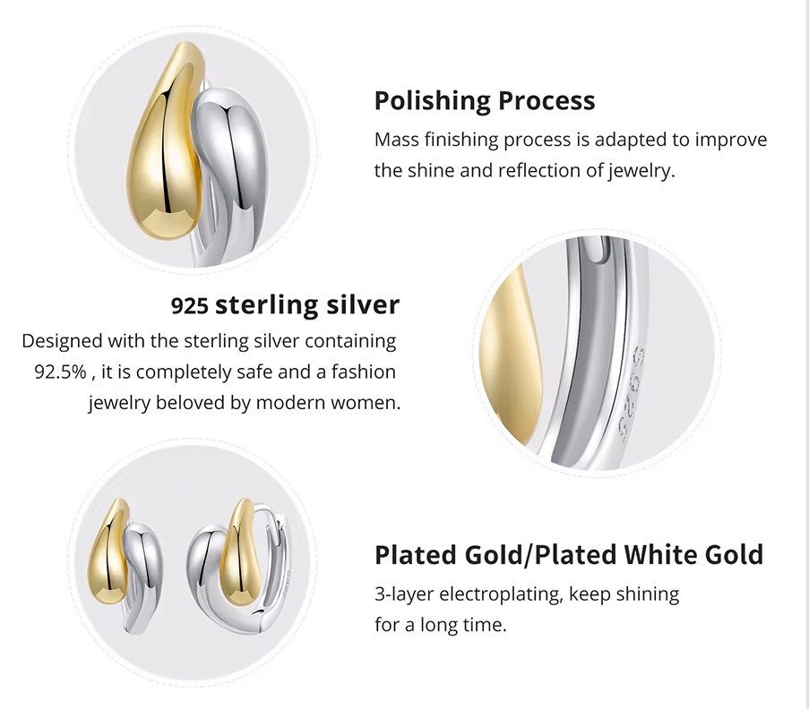 Μοντέρνα σκουλαρίκια κρίκοι Bamoer, κατασκευασμένα από ασήμι 925 και με επιχρυσωμένο φινίρισμα.