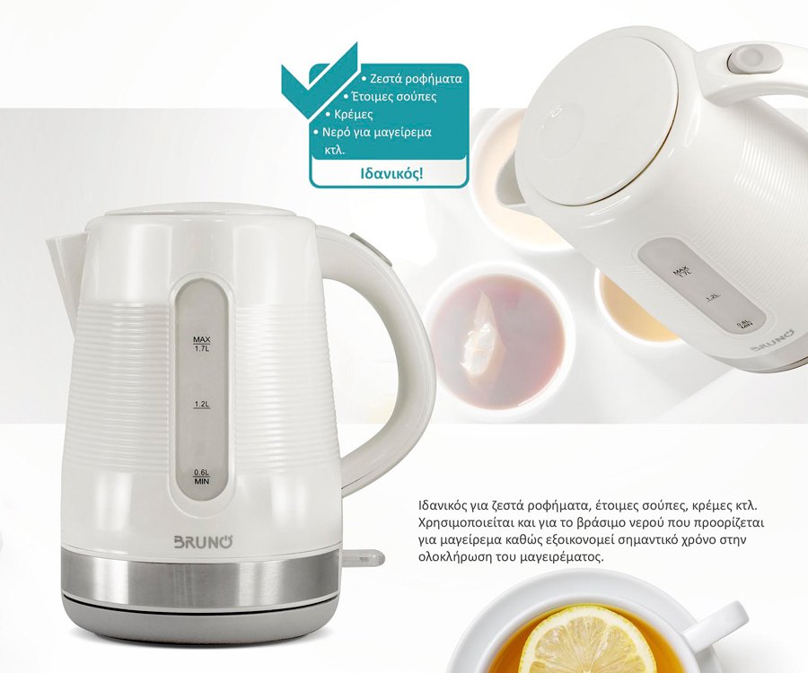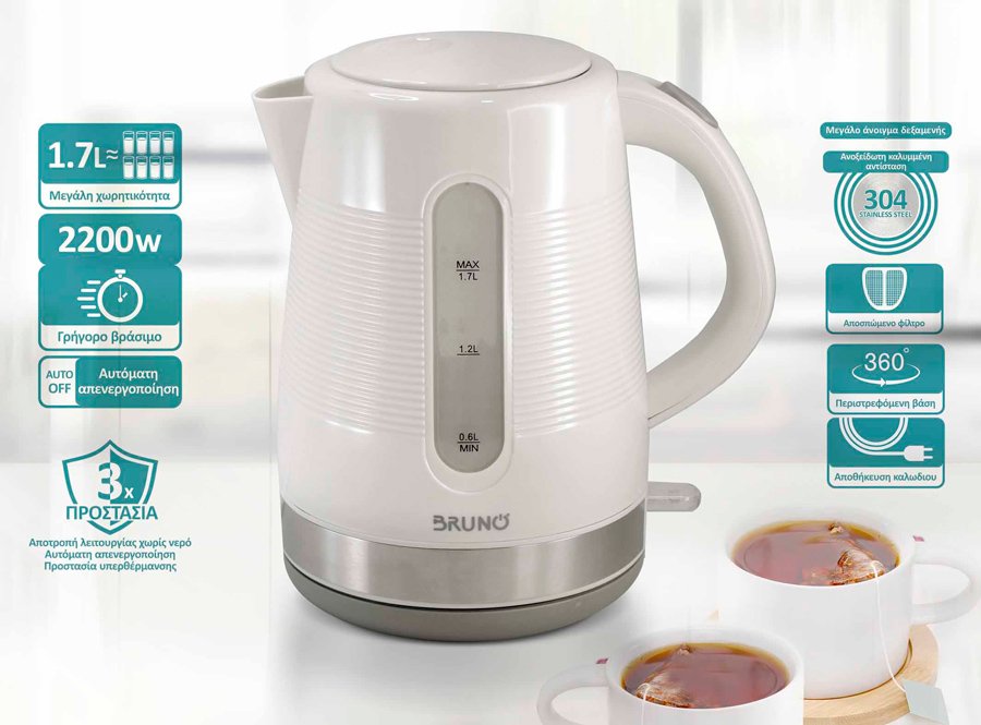BRUNO βραστήρας νερού BRN-0142, 1.7L, 2200W, λευκό-γκρι