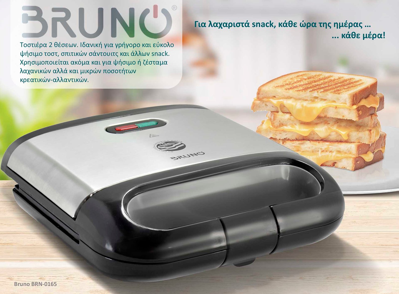 Η τοστιέρα 2 θέσεων BRN-0165 είναι ιδανική για γρήγορο και εύκολο ψήσιμο τοστ, σπιτικών σάντουιτς και άλλων snack σε σύντομο χρόνο.