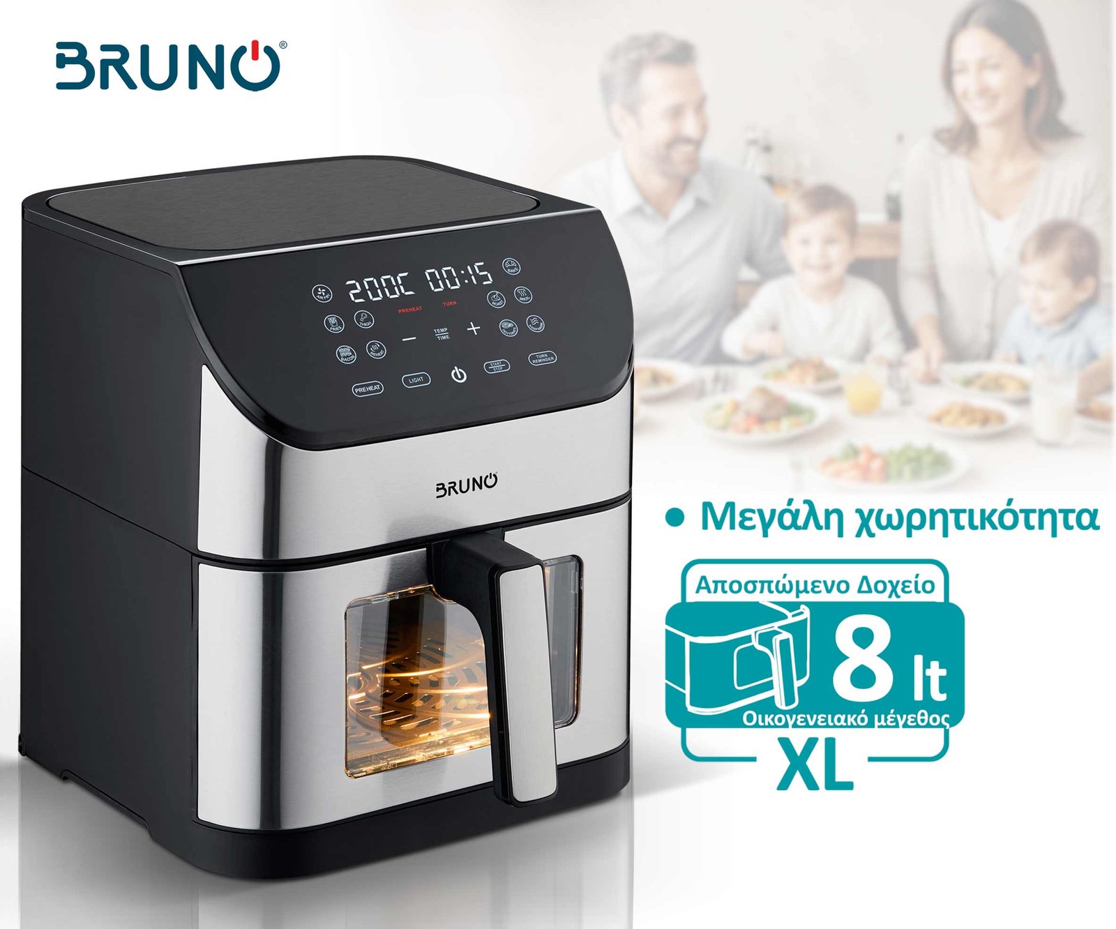 BRUNO φριτέζα αέρος BRN-0194, 8lt, 1800W, inox/μαύρη