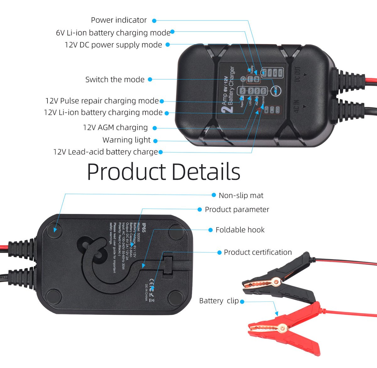 Ο BYGD S2000 είναι ένας αξιόπιστος και έξυπνος φορτιστής–συντηρητής μπαταρίας, ιδανικός για αυτοκίνητα, μοτοσυκλέτες και άλλα οχήματα με μπαταρίες 6V ή 12V.