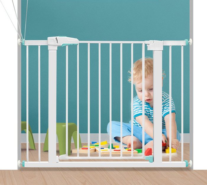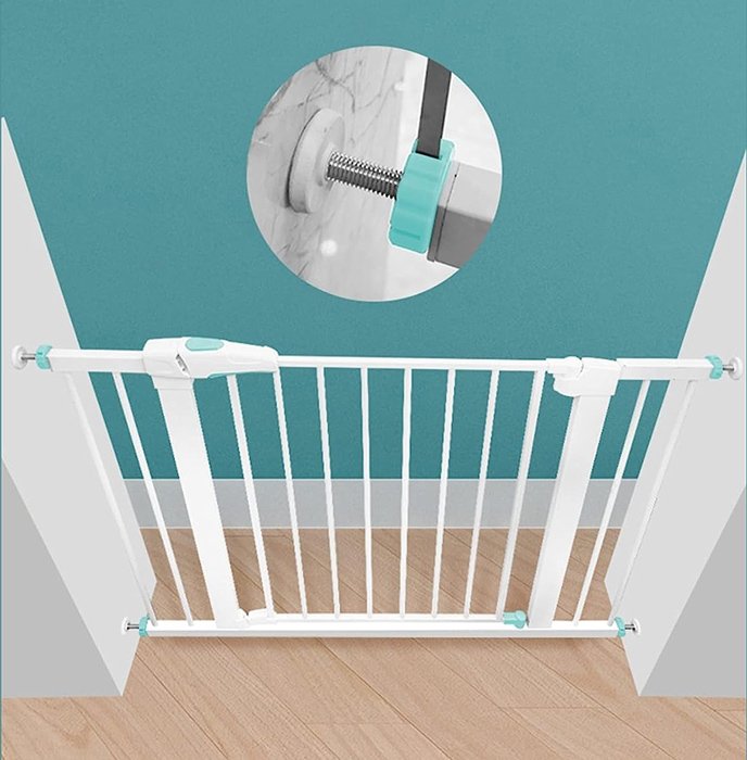 Μεταλλική πόρτα ασφαλείας για την προστασία παιδιών μικρής ηλικίας. Τοποθετείται σε μέρη του σπιτιού που βρίσκονται κοντά σε σκάλες ή άλλα σημεία που θεωρούνται επικίνδυνα για τα παιδιά. Επιπλέον, μπορεί να χρησιμοποιηθεί και ως διαχωριστικό για σκύλους, αποτρέποντας την πρόσβαση τους σε σκάλες ή συγκεκριμένους χώρους του σπιτιού. Διαθέτει ύψος 76cm και ανοίγει και προς τις 2 πλευρές.