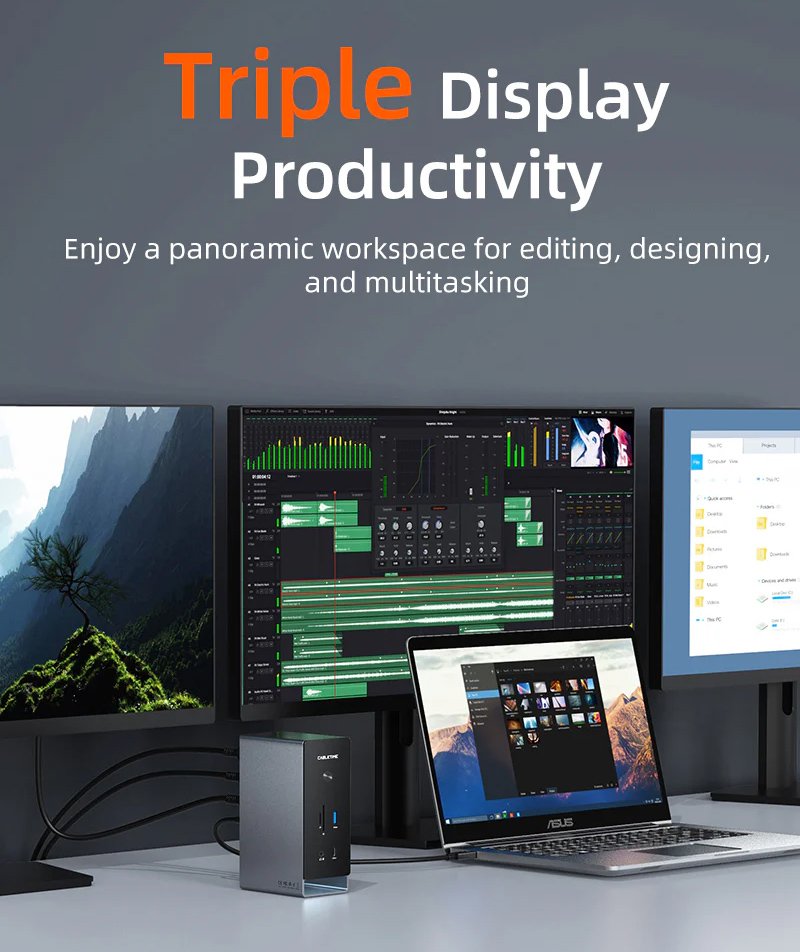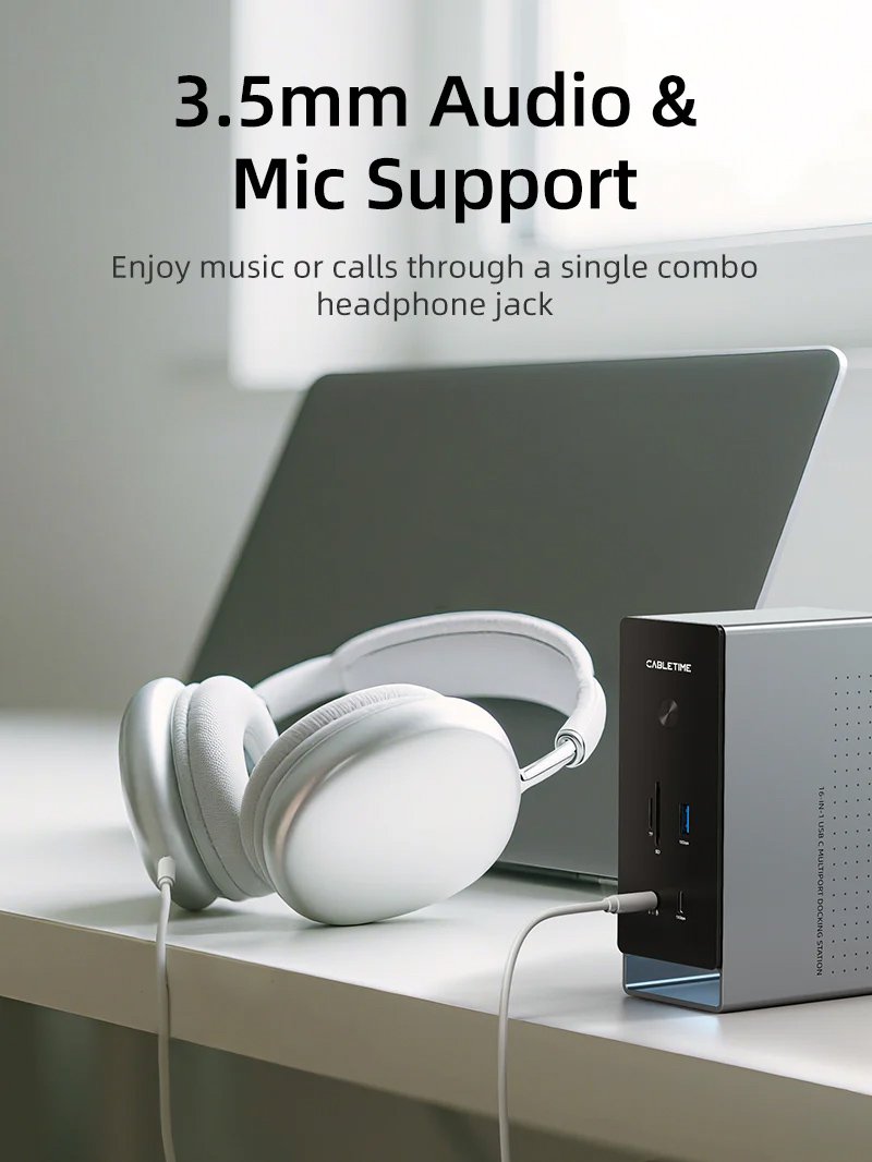 CABLETIME docking station CT-DK181-AG, 16 θυρών, USB-C σύνδεση, 100W PD, 1000Mbps, MST, γκρι