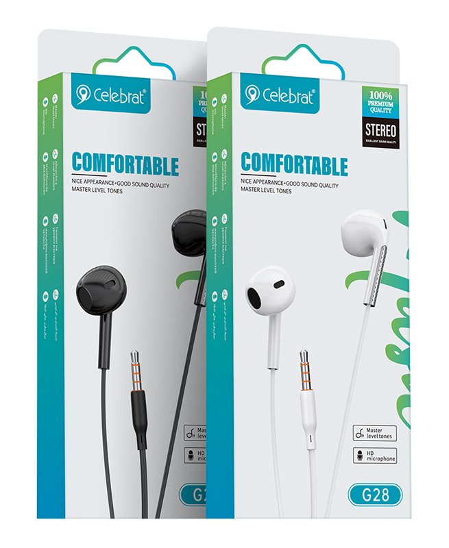 CELEBRAT earphones με μικρόφωνο G28, 3.5mm σύνδεση, Φ10mm, 1.2m, μαύρα