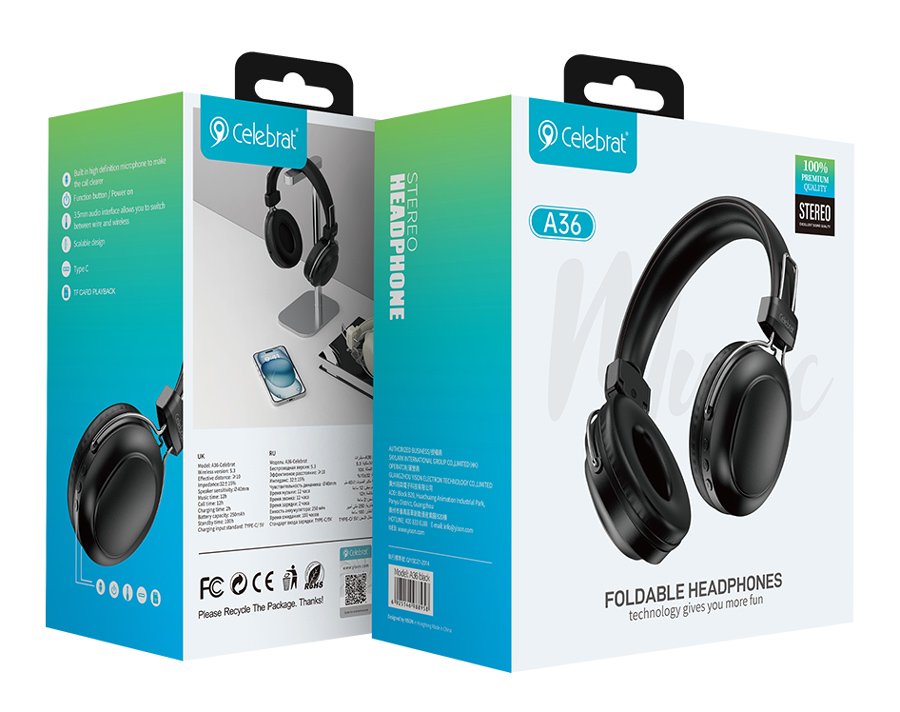 CELEBRAT headphones A36, ασύρματα & ενσύρματα, micro SD, 40mm, 250mAh, μαύρα