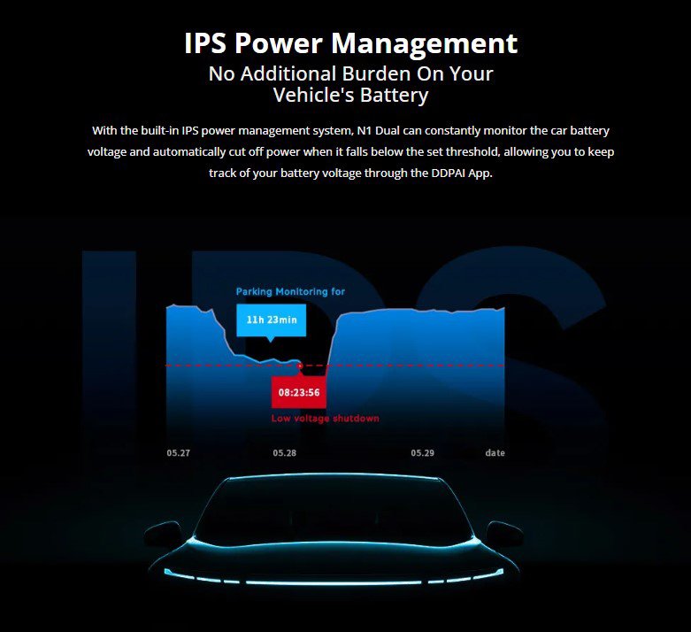 Με το ενσωματωμένο σύστημα διαχείρισης ενέργειας IPS, το N1 Dual μπορεί να παρακολουθεί συνεχώς την τάση της μπαταρίας του αυτοκινήτου και να διακόπτει αυτόματα την τροφοδοσία όταν πέσει κάτω από το καθορισμένο όριο, επιτρέποντάς σας να παρακολουθείτε την τάση της μπαταρίας σας μέσω της εφαρμογής.