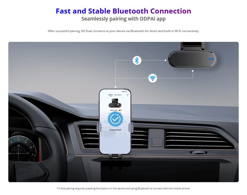 Συνδέεται με smartphone μέσω WiFi και Bluetooth, και της εφαρμογής DDPAI για τον απομακρυσμένο χειρισμό της από το smartphone.