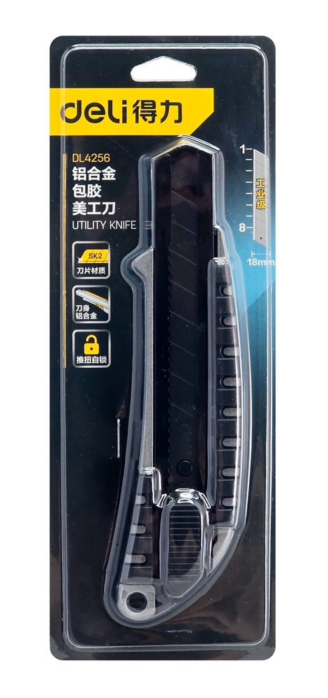 DELI κοπίδι DL4256 με αυτόματο κλείδωμα, μεταλλικό, 18mm, γκρι