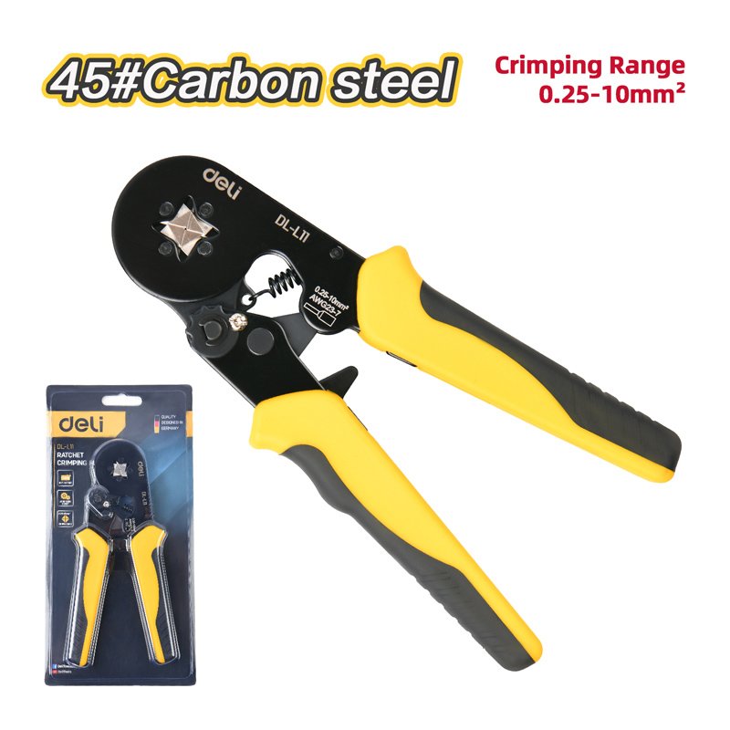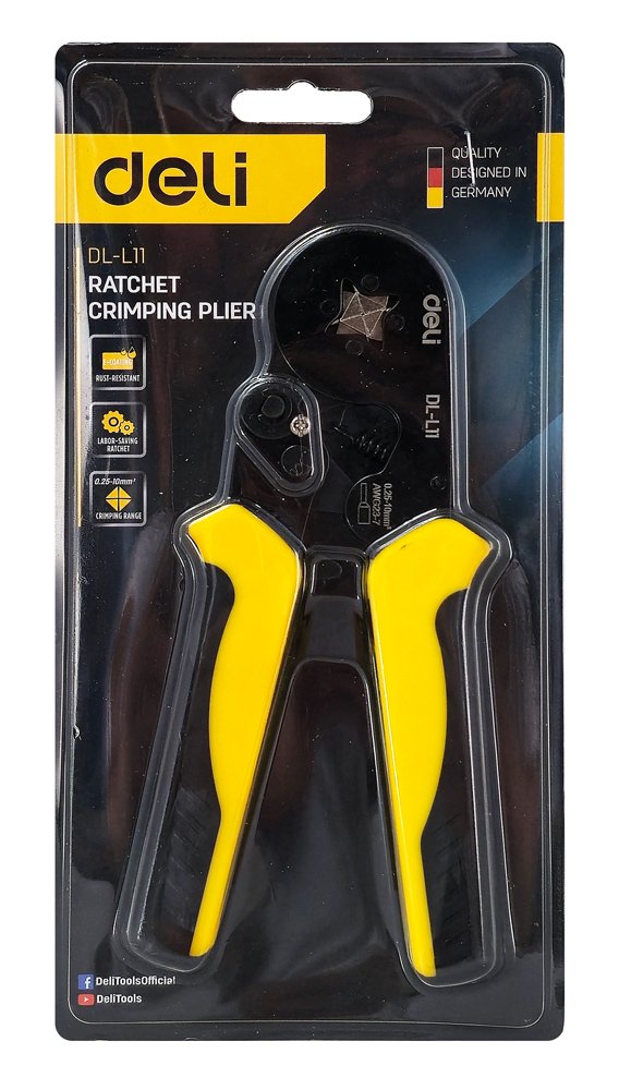 Πρέσα ακροδεκτών καλωδίων της Deli ιδανική για γρήγορο πρεσάρισμα ακροδεκτών σε καλώδια διαφόρων διατομών.