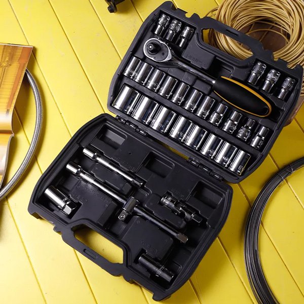 Όλα τα εργαλεία και εξαρτήματα του σετ είναι τοποθετημένα μέσα σε πλαστικό βαλιτσάκι, για την εύκολη τακτοποίηση και μεταφορά τους.