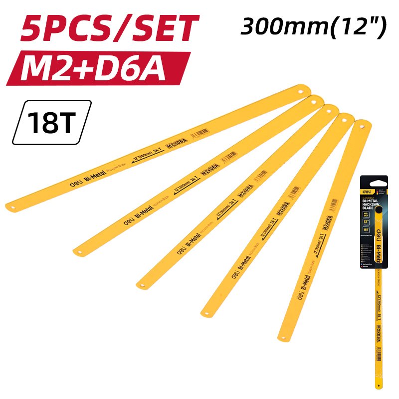 DELI σετ λάμες πριονιού σιδήρου/ξύλου DL353805A, 300mm, 18 TPI, 5τμχ