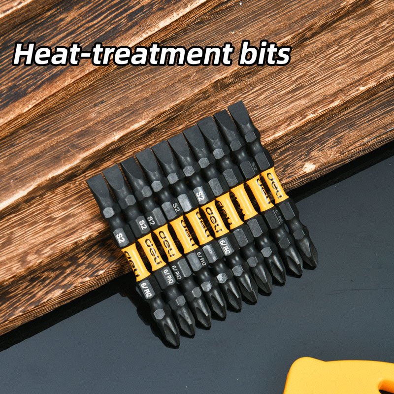 Σετ μύτες κατσαβιδιού της Deli για χρήση με δράπανο ή ηλεκτρικό κατσαβίδι. Η συσκευασία περιλαμβάνει 10 μύτες.