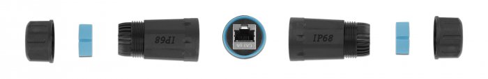 Αδιάβροχος αμφίδρομος σύνδεσμος καλωδίου RJ45 Cat.6A ιδανικός για συνδέσεις ethernet σε εξωτερικούς χώρους.