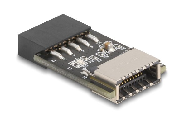 Αυτός ο αντάπτορας της Delock μετατρέπει τον USB pin σύνδεσμο ενός εσωτερικού καλωδίου PC σε USB Type-E Key.