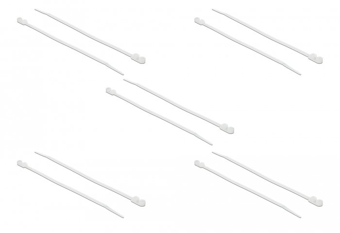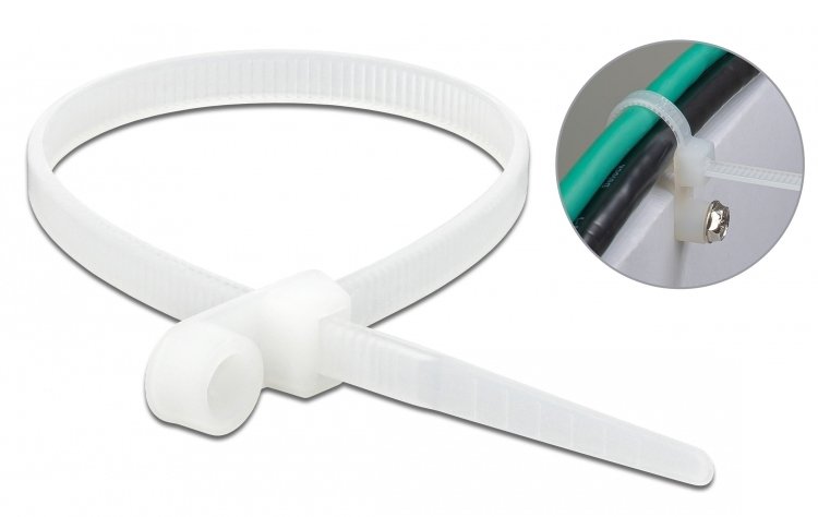 DELOCK Δεματικά καλωδίων 18944 με οπή στερέωσης, 160×4.8mm, λευκά, 10τμχ