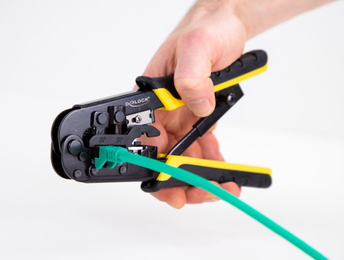 Πολυλειτουργικό εργαλείο της Delock, κατάλληλο για πτύχωση, απογύμνωση και κοπή βυσμάτων 8P (RJ45), 6P (RJ12 / 11) ή 4P. Οι τρεις ενσωματωμένες λεπίδες εξασφαλίζουν την απρόσκοπτη απογύμνωση των καλωδίων και κοπή των strands. Επιπλέον, τα στρογγυλά καλώδια διαμέτρου έως 5,5mm και τα επίπεδα καλώδια πλάτους έως 12,7mm μπορούν να αφαιρεθούν ή να κοπούν πλήρως.