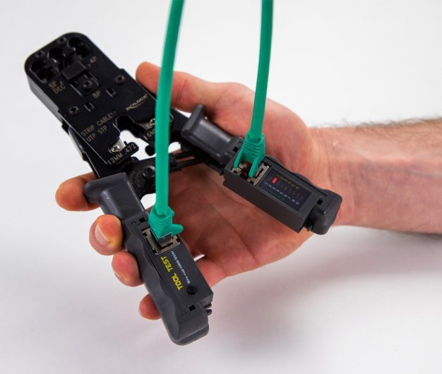 Διαθέτει ενδείξεις LED για τον έλεγχο των pin της καλωδίωσης ανάλογα με τον τύπο του βύσματος (1 – 8 +G για RJ45, 1 – 6 για RJ11 και 1 – 4 για RJ10).