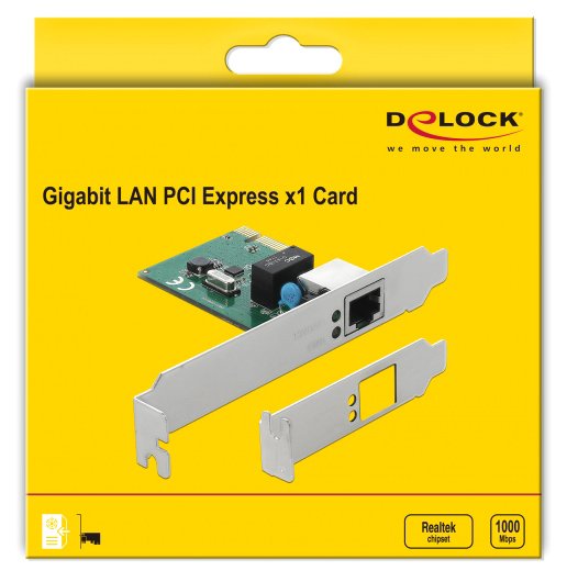 Η κάρτα PCI Express της Delock προσφέρει μια θύρα δικτύου RJ45 με ρυθμό μεταφοράς δεδομένων έως 1000 Mbps.
