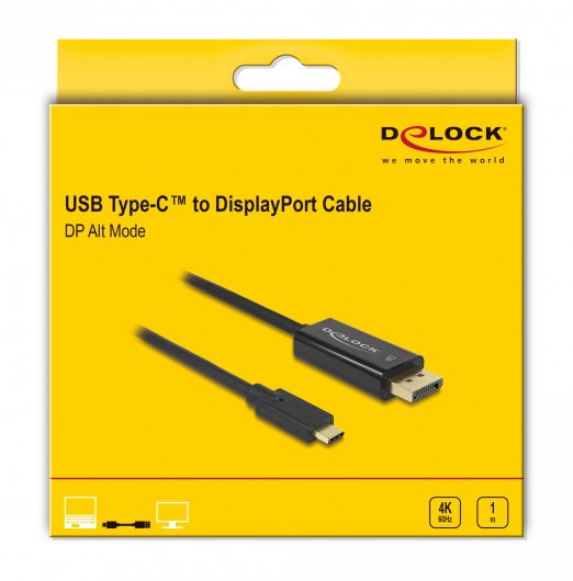DELOCK καλώδιο USB-C σε DisplayPort 85255, DP Alt Mode, 4K, 1m, μαύρο