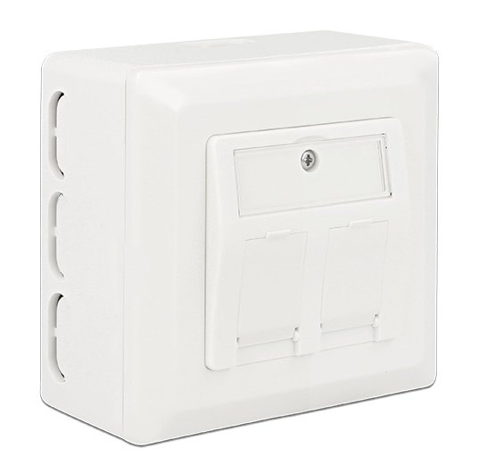 Οπίσθιο κουτί της Delock, μπορεί να χρησιμοποιηθεί για την επιφανειακή τοποθέτηση σε πρίζες τοίχου με υποδοχές των 60mm όπως της πρίζας τοίχου Delock Keystone 86202.