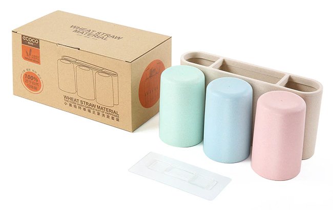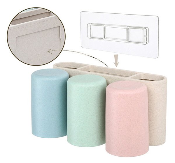 Βάση οδοντόβουρτσας με 3 ποτήρια της Ecoco και κομψή εμφάνιση, κατασκευασμένη από Eco-friendly υλικά. Τοποθετείται εύκολα στον τοίχο με αυτοκόλλητα τα οποία αποσπώνται από την βάση, διευκολύνοντας τον καθαρισμό της. Διαθέτει 3 ποτήρια και 3 θήκες όπου μπορούν να τοποθετηθούν οδοντόβουρτσες, οδοντόκρεμες ή αλλά αντικείμενα υγιεινής.