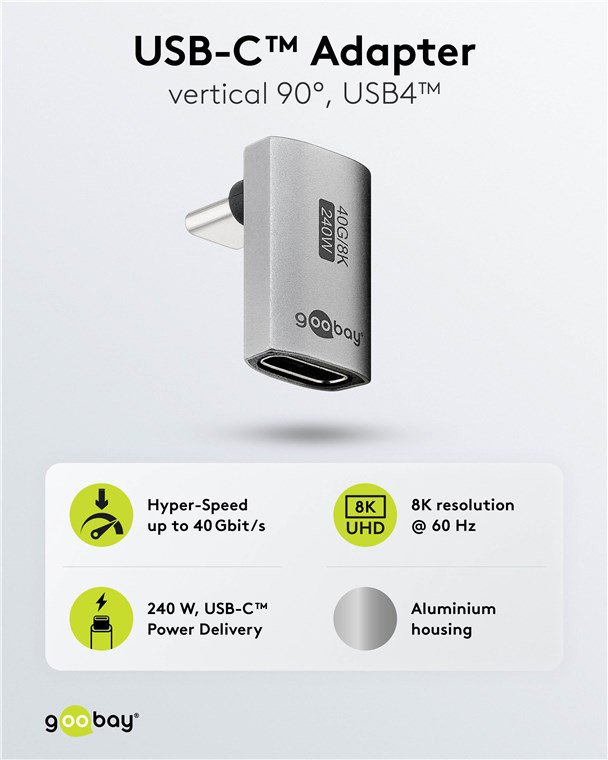 GOOBAY αντάπτορας USB-C 74442, γωνιακός 90°, USB4, 240W, 40Gbps, 8K, γκρι