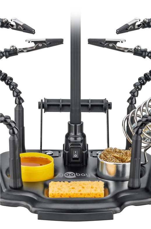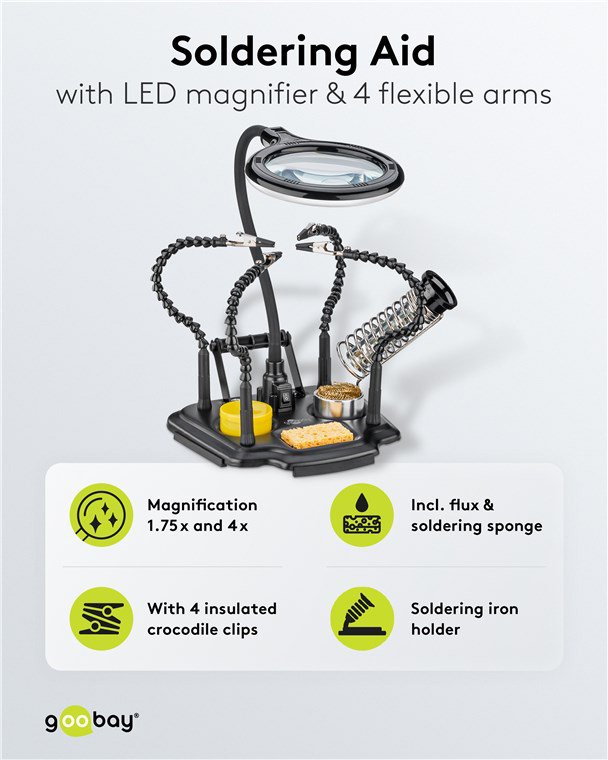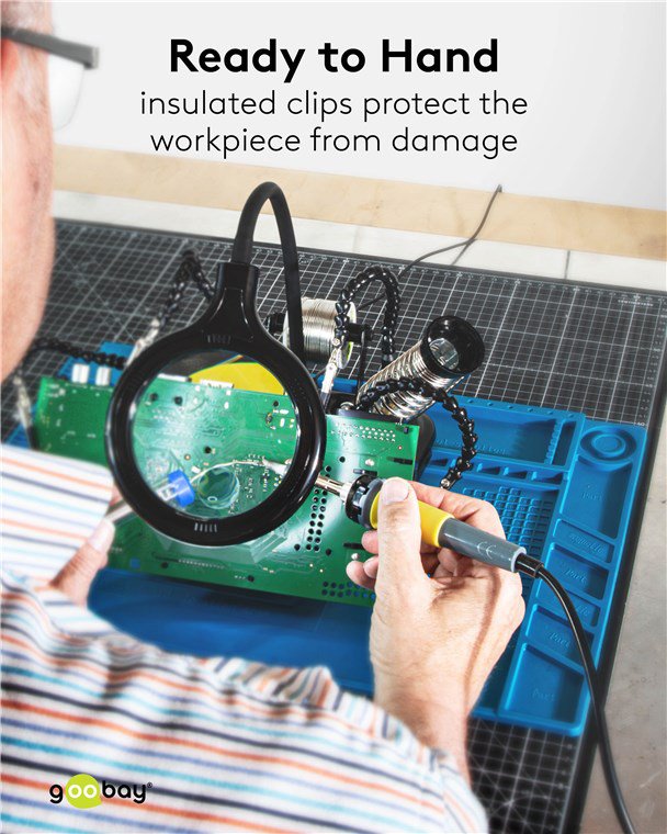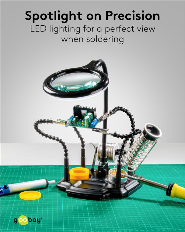 GOOBAY βάση στήριξης πλακέτας 76558 με μεγεθυντικό φακό & θέση για κολλητήρι, 4x βραχίονες, μαύρη