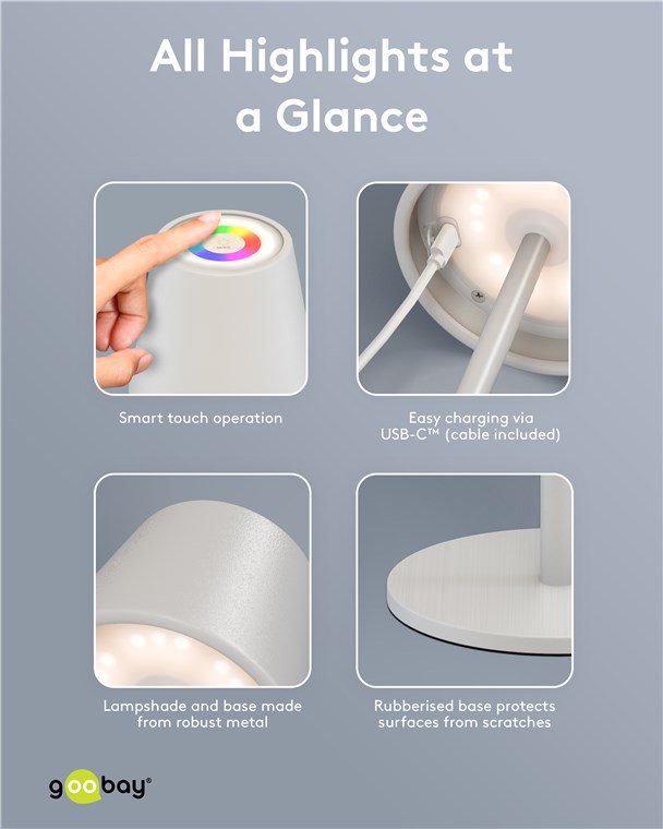 GOOBAY επιτραπέζιο φωτιστικό 73928, RGB, επαναφορτιζόμενο, λευκό