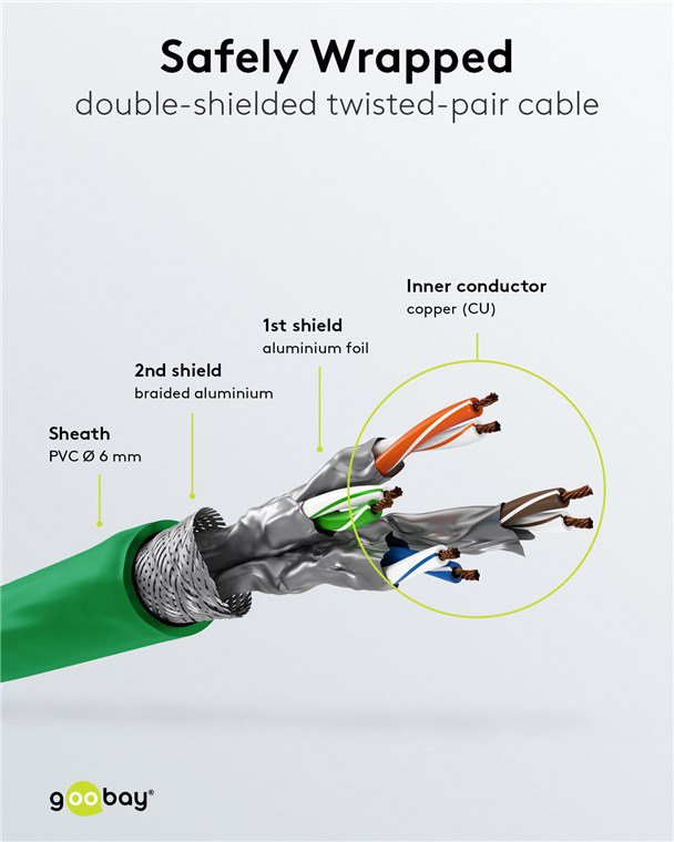 Τα καλώδια δικτύου της Goobay κατασκευάζονται από ποιοτικά υλικά, με τις υψηλότερες τεχνικές προδιαγραφές, προσφέροντας αξιόπιστη λειτουργία υψηλής απόδοσης, με αντοχή στον χρόνο.