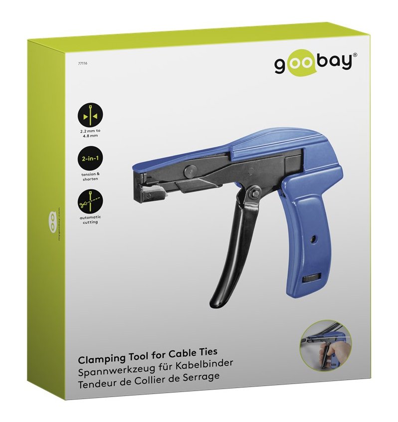 Το μεταλλικό πιστόλι της Goobay συσφίγγει και κόβει με εύκολο τρόπο δεματικά καλωδίων 2.2 έως 4.8 mm. Διαθέτει εργονομική λαβή με ρύθμιση έντασης ώστε όταν η σύσφιξη φτάσει στο όριο της ρύθμισης τότε αυτόματα κόβει το περίσσευμα του δεματικού.