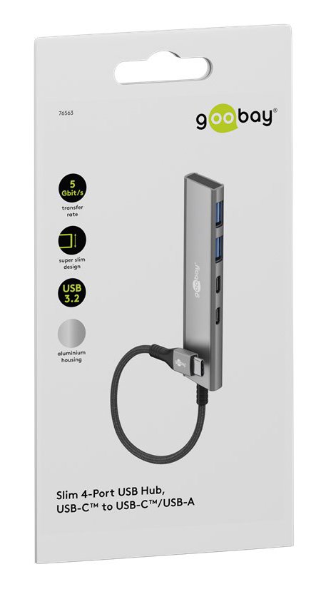 GOOBAY USB hub 76563, 4x θυρών, USB 3.2, 5Gbps, USB-C σύνδεση, γκρι