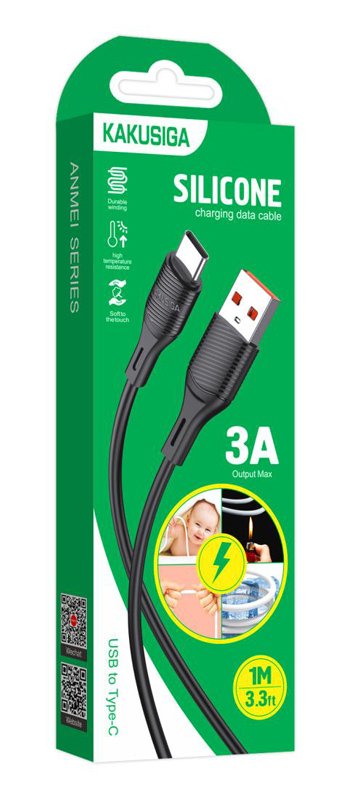 KAKUSIGA καλώδιο USB-C σε USB KSC-953, σιλικόνης, 3A, 480Mbps, 1m, μαύρο