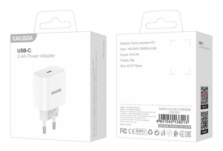 KAKUSIGA φορτιστής τοίχου KSC-1230, USB-C, 2.4A, λευκός