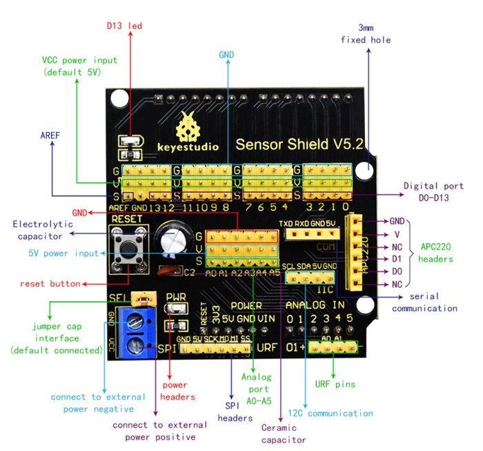Sensor shield V5 της Keyestudio. Είναι πλήρως συμβατό με UNO R3.