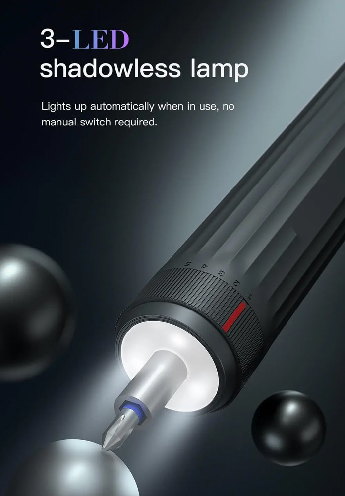 Ηλεκτρικό κατσαβίδι από την Kingsdun με ισχυρό κινητήρα και βολικό LED φακό για άνετη εργασία ακόμη και στο σκοτάδι.