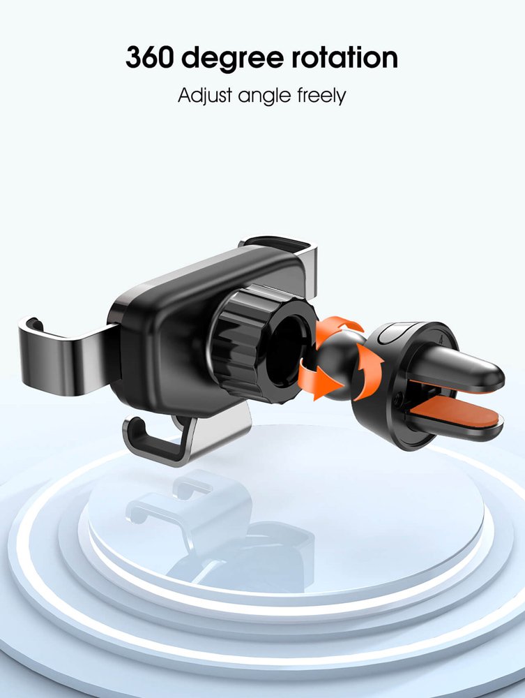 Βάση αυτοκινήτου για smartphone με στήριξη σε οριζόντιους ή κάθετους αεραγωγούς του αυτοκινήτου.