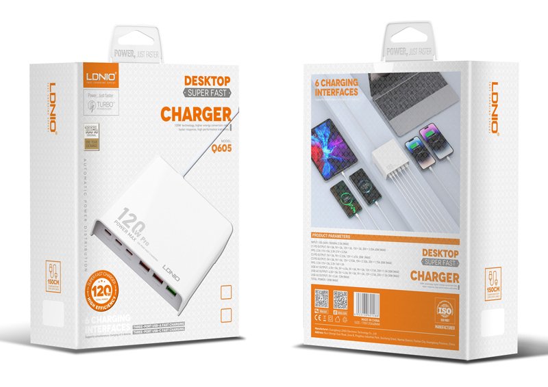 LDNIO σταθμός φόρτισης Q605, 3x USB-C & 3x USB, 120W, PD/QC, λευκός