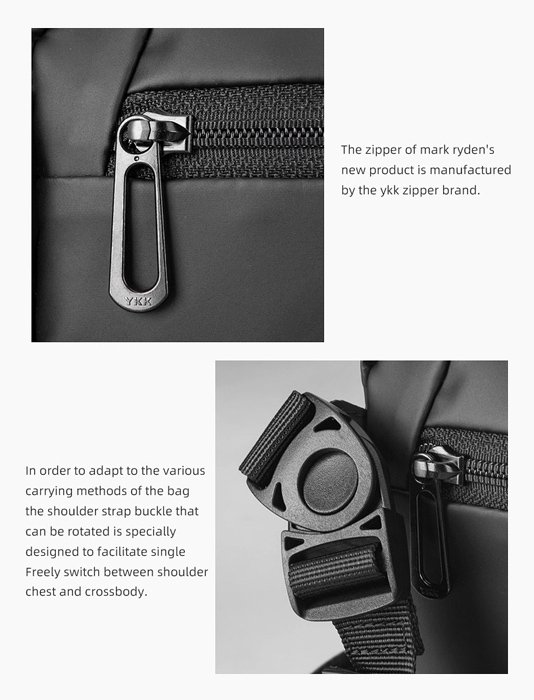 MARK RYDEN τσάντα ώμου MR8616, με θήκη tablet 7.9", 4L, αδιάβροχη, μαύρη