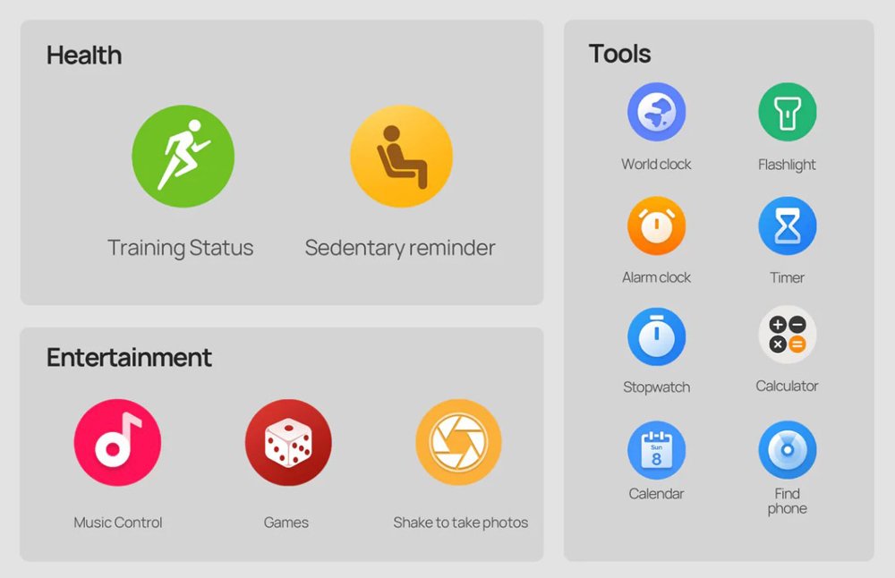 Διαθέτει πληθώρα fitness χαρακτηριστικών, αισθητήρα καρδιακών παλμών και ενσωματωμένο GPS. Επιπλέον, υποστηρίζει τηλεφωνικές κλήσεις μέσω Bluetooth, απευθείας από το smartwatch.