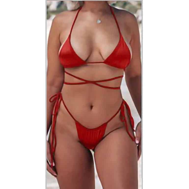 Μοντέρνα σέξι νεανικά Μονόχρωμα μπικίνι σετ με φαρδιά κορδέλα