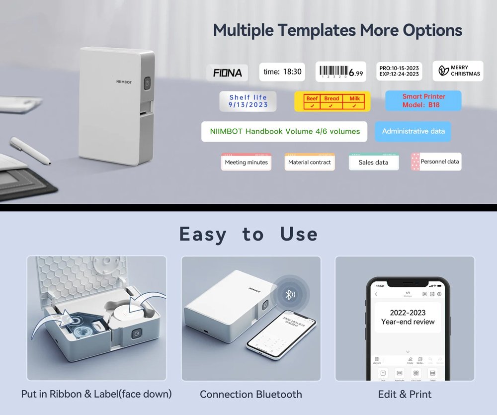 Ο θερμικός εκτυπωτής της NIIMBOT σας επιτρέπει να εκτυπώνετε αυτοκόλλητες ετικέτες τις οποίες μπορείτε να δημιουργήσετε εύκολα και γρήγορα από το smartphone σας.
