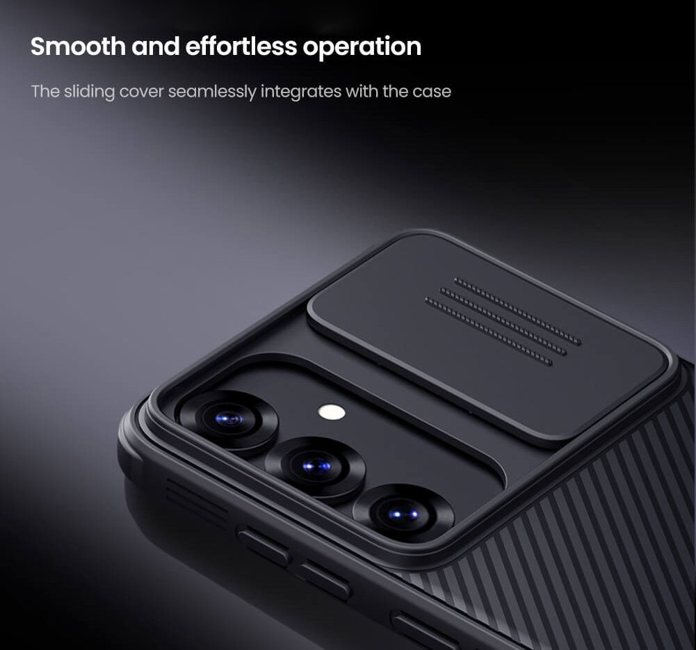 Η θήκη της σειράς CamShield Pro της Nillkin χαρακτηρίζεται από την ενισχυμένη προστασία που προσφέρει, το σκληρό υλικό κατασκευής της με την ανάγλυφη επιφάνεια, αλλά και την έξτρα προστασία των καμερών και της ιδιωτικότητας σας, χάρη στο συρόμενο καπάκι της.
