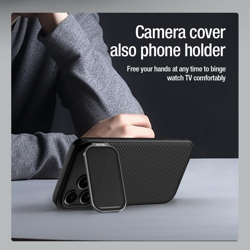 Η θήκη της σειράς CamShield Prop της Nillkin χαρακτηρίζεται από την ενισχυμένη προστασία που προσφέρει, το σκληρό υλικό κατασκευής της με την ανάγλυφη επιφάνεια, αλλά και την έξτρα προστασία των καμερών και της ιδιωτικότητας σας, χάρη στο ανοιγόμενο μεταλλικό καπάκι καμερών, το οποίο μπορεί να χρησιμοποιηθεί και ως stand.