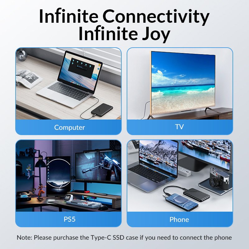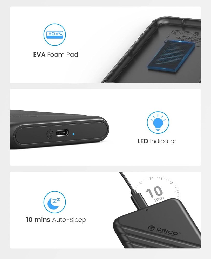 Η θήκη της ORICO επιτρέπει την σύνδεση ενός 2.5" SATA HDD ή SSD με έναν επιτραπέζιο ή φορητό υπολογιστή μέσω θύρας USB-C.