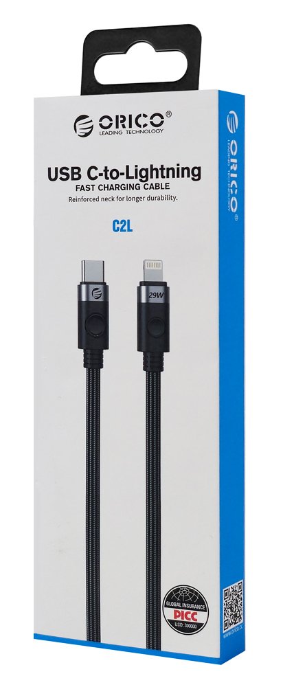 Καλώδιο φόρτισης και μεταφοράς δεδομένων Lightning σε USB-C της ORICO. Υποστηρίζει φόρτιση με απόδοση έως 29W και μεταφορά δεδομένων με ταχύτητα έως 480Mbps.