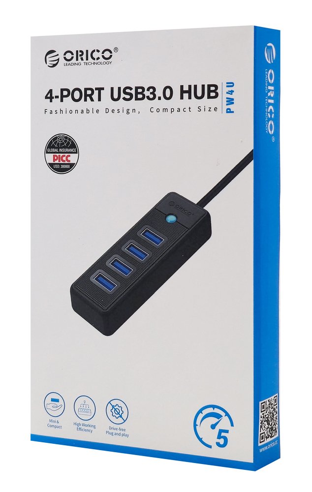 Αυτό το hub της ORICO μπορεί να συνδεθεί με το laptop ή το desktop σας μέσω θύρας USB-C και να επεκτείνει τις θύρες του με 4x USB θύρες. Διαφορετικές συσκευές USB, όπως εξωτερικοί σκληροί δίσκοι, card readers, ποντίκια κλπ. μπορούν να συνδεθούν μέσω του hub.